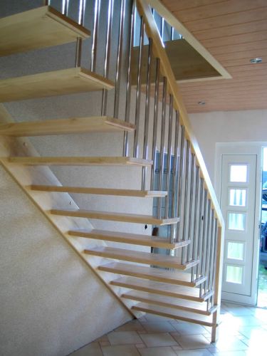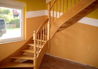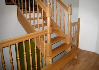 Schody wykonujemy w różnych wariantach indywidualnych z tarcicy wysokiej klasy, takiej jak: sosna, buk, dąb, jesion, egzotyka. Wykończone wysokiej klasy lakierami odpornymi na ścieranie czy oliwione na życzenie klienta.