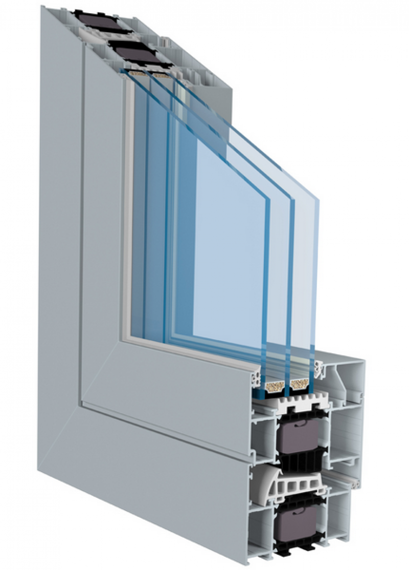 - nowy standard zachodzenia profila z szybą (zwiększona głębokość znacząco polepsza właściwości termiczne i konstrukcyjne systemu